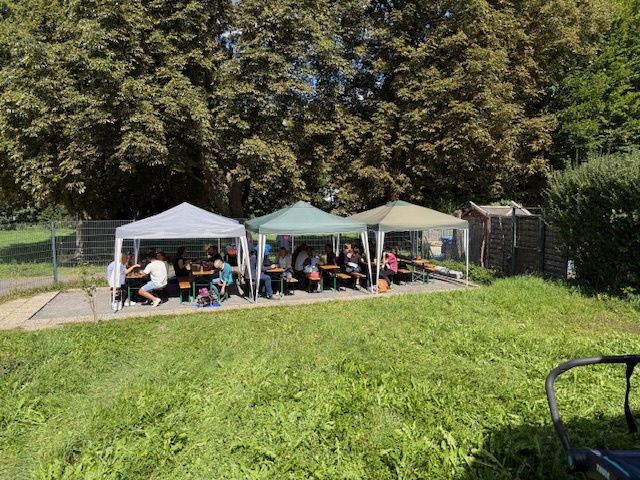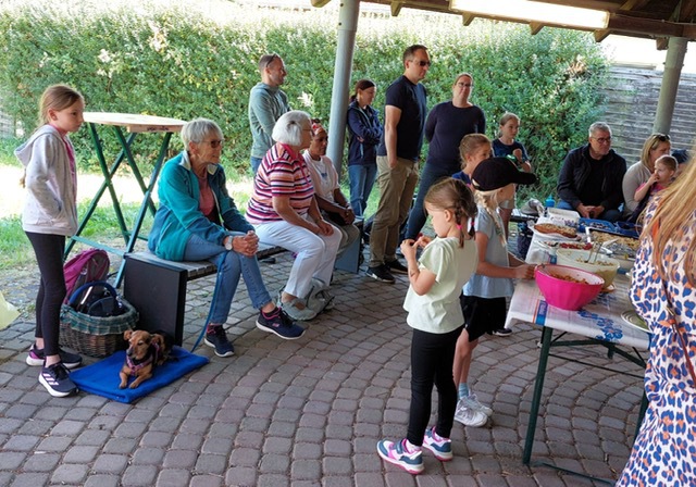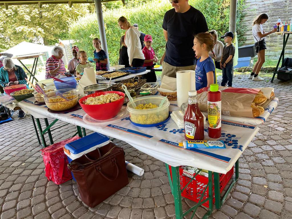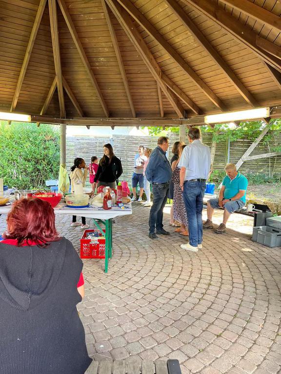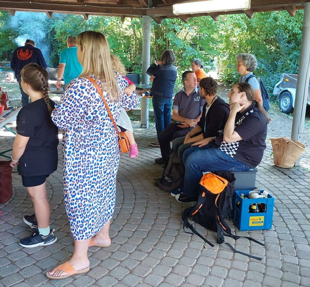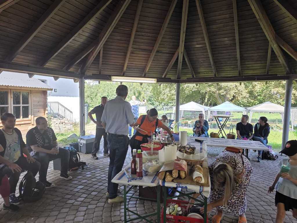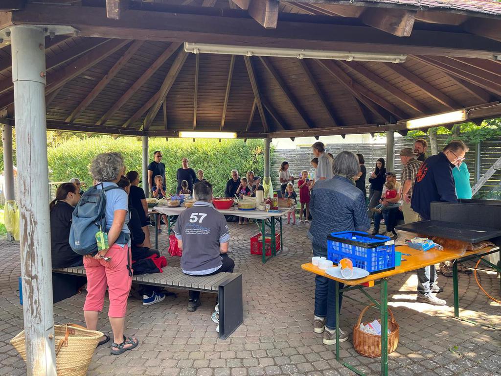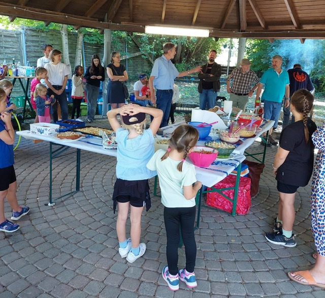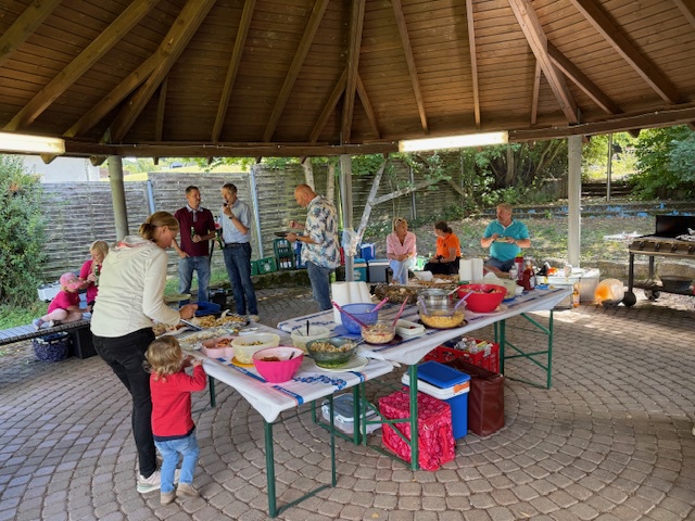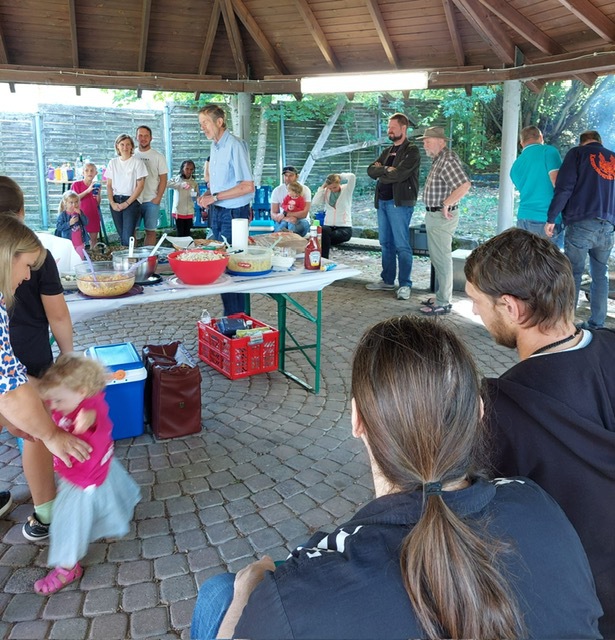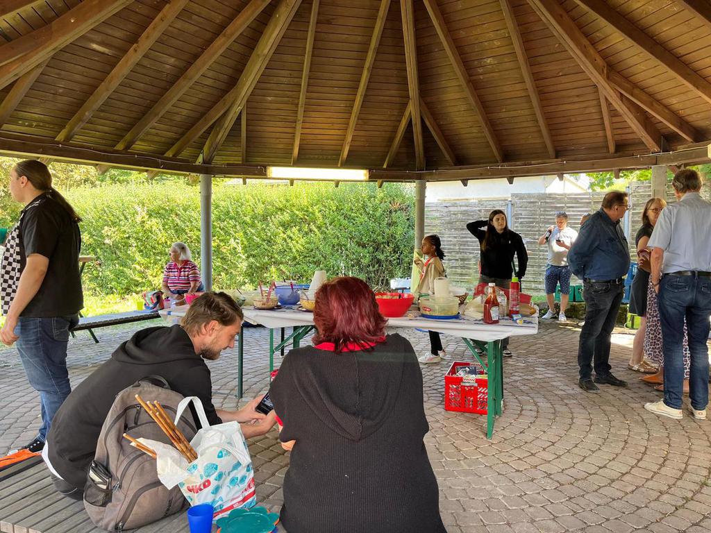Im Anschluss wurde das Grillfest eröffnet. Auf dem Grill brutzelten leckere Spieße und Würstel, die von allen begeistert angenommen wurden. Zahlreiche Salat- und Kuchenspenden ergänzten das kulinarische Angebot und sorgten für eine bunte Auswahl auf den Tischen.